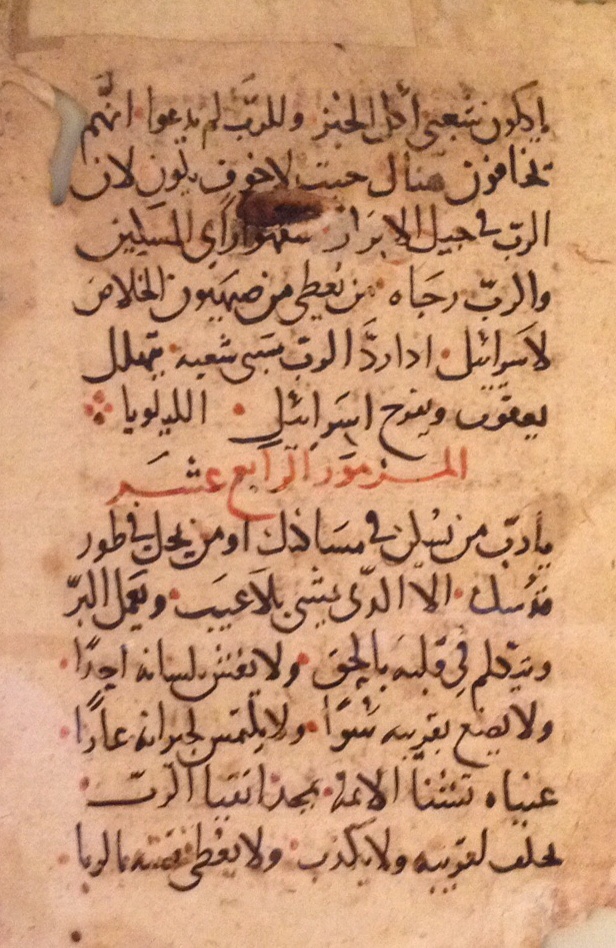 Psalms in Arabic can be said to be frequent because of one of the fine features of psalmody; they are established, sung and loved in all the three major Abrahamic faiths — Judaism, Christianity and Islam. (Recent followers will probably not have read a previous post, David and Da’ud, on this topic but may find that interesting at this point.)