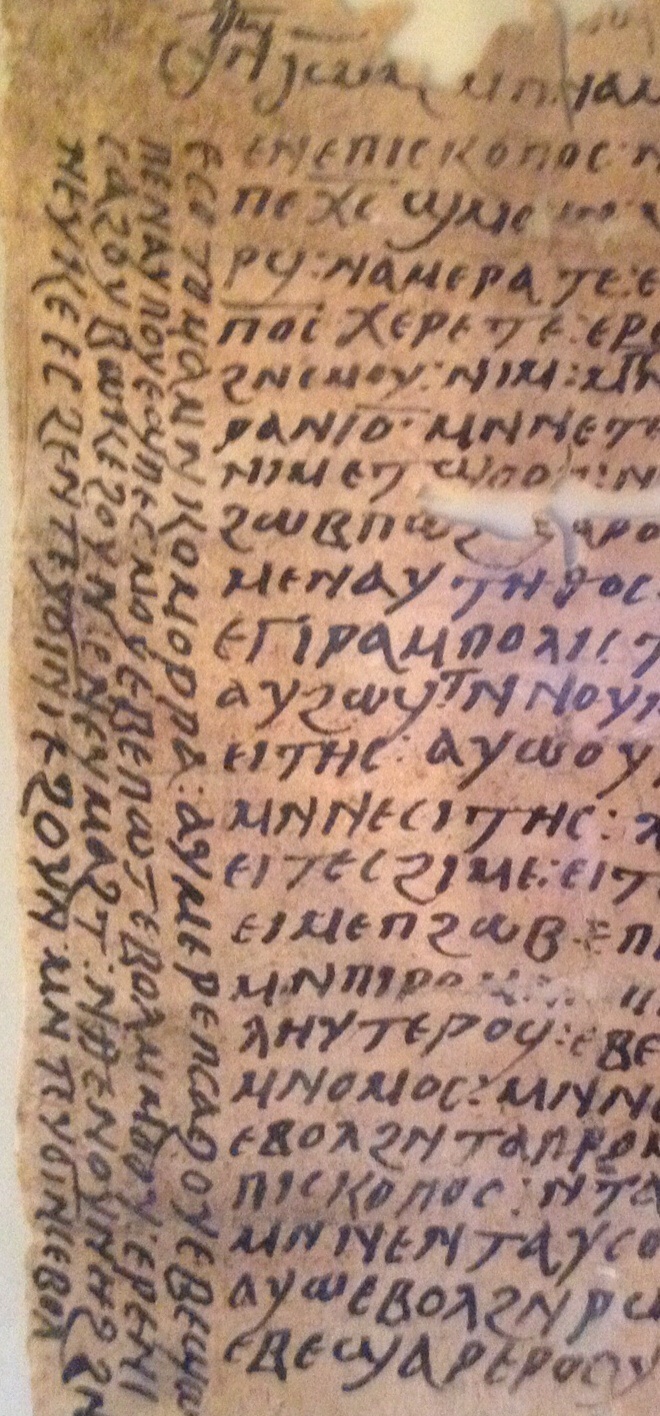 Before Arabic spread with Islam into Egypt centuries ago, the Coptic language and script were used, particularly in the Coptic churches. The illustration at right (click pics to enlarge) is also of ‘a Christian text’ from Exodus.
