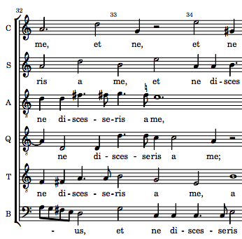 It is also quite demanding — note the absence of bar lines and the apparent independence of individual voices in the illustration. Cadences are sometimes surprising and unpredictable, often passionate.