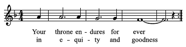 Others — such as the very simple home-grown refrain illustrated, and the fragment of Martin Luther’s Ein Feste Burg in Psalms for All Seasons — focus on divine goodness. The alternate refrain to that setting 45B is by John Bell. Creative as always, he stretches his interpretation widely and borrows and bends a phrase from the Song of Solomon 8:6 in his refrain: