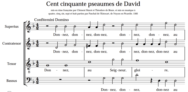 A short piece on the first two verses by Paschal de L’Estocart published 1583 may suit a quartet, although the original calls for a countertenor: