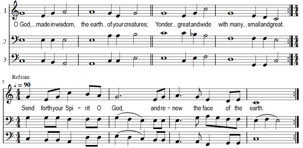 At Woden Valley this week we continue what seems to be a temporary and unintentional ‘Return to TiS’ trend — rediscovering some of the psalm settings in Together in Song that are seldom used. Psalm 104 in TiS 65 provides a positive and timely refrain, a prayer quoting verse 30: