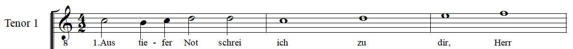 No less than eleven settings for various voice combinations by Michael Praetorius are listed.