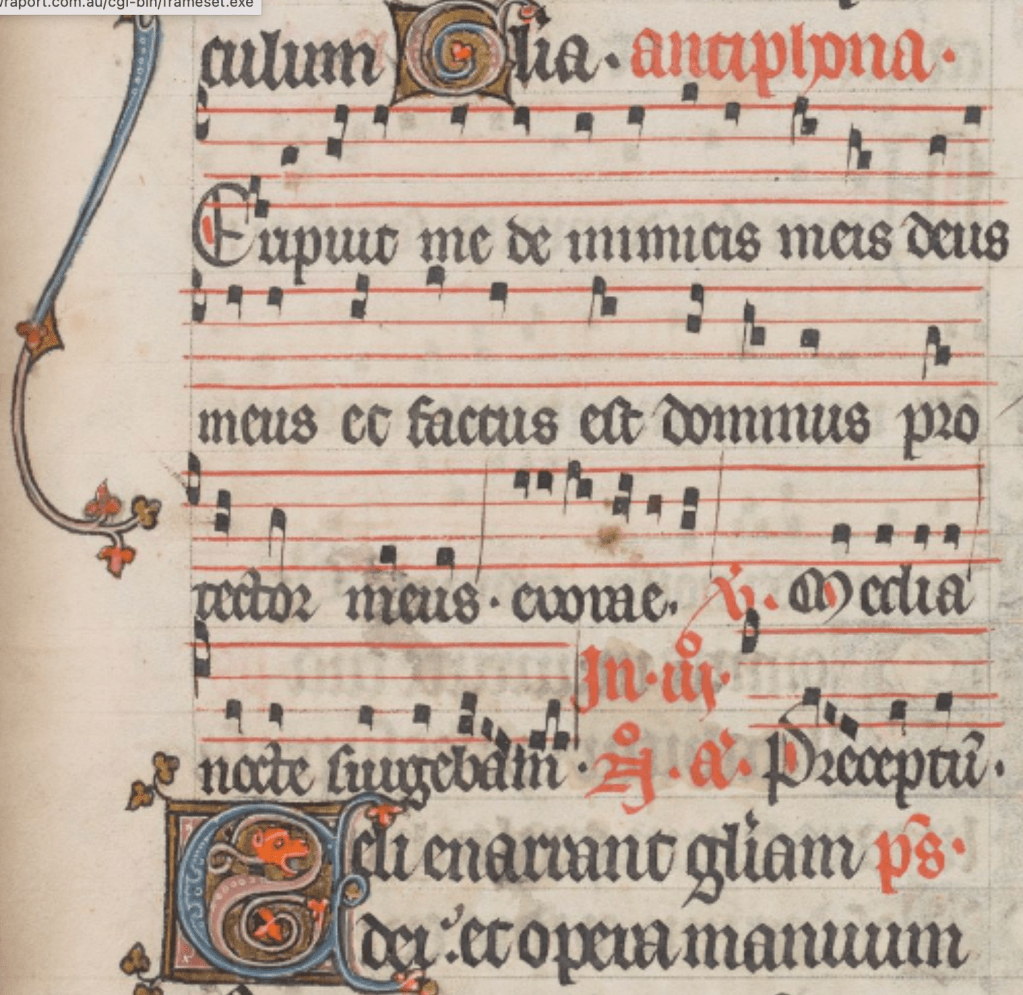 But for now, a medieval rabbit hole takes us into an antiphon to Psalm 19 in the old Breviary of Marguerite de Bar, from Verdun in France. How old? The manuscript in two parts is over seven hundred years old and carefully preserved and digitised.