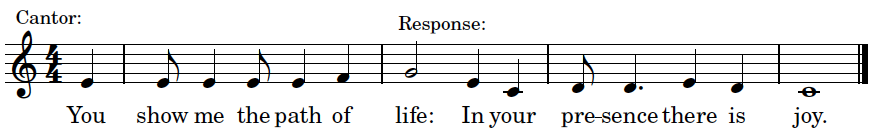 This couplet for the call-and-response antiphon is the second half of a longer composition by the cantor, to which the verses are sung — in a rather more free and lyrical style than the following sound clip: