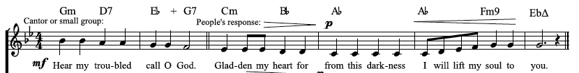 The concave tune shown above does not follow the sun’s trajectory so well in this northern context, not that such shape matters a jot. The Psalm 86 refrain from NCH (by Judy Hunnicutt, 1994) goes nicely up and down. It swings along nicely and the message is apposite. QED.